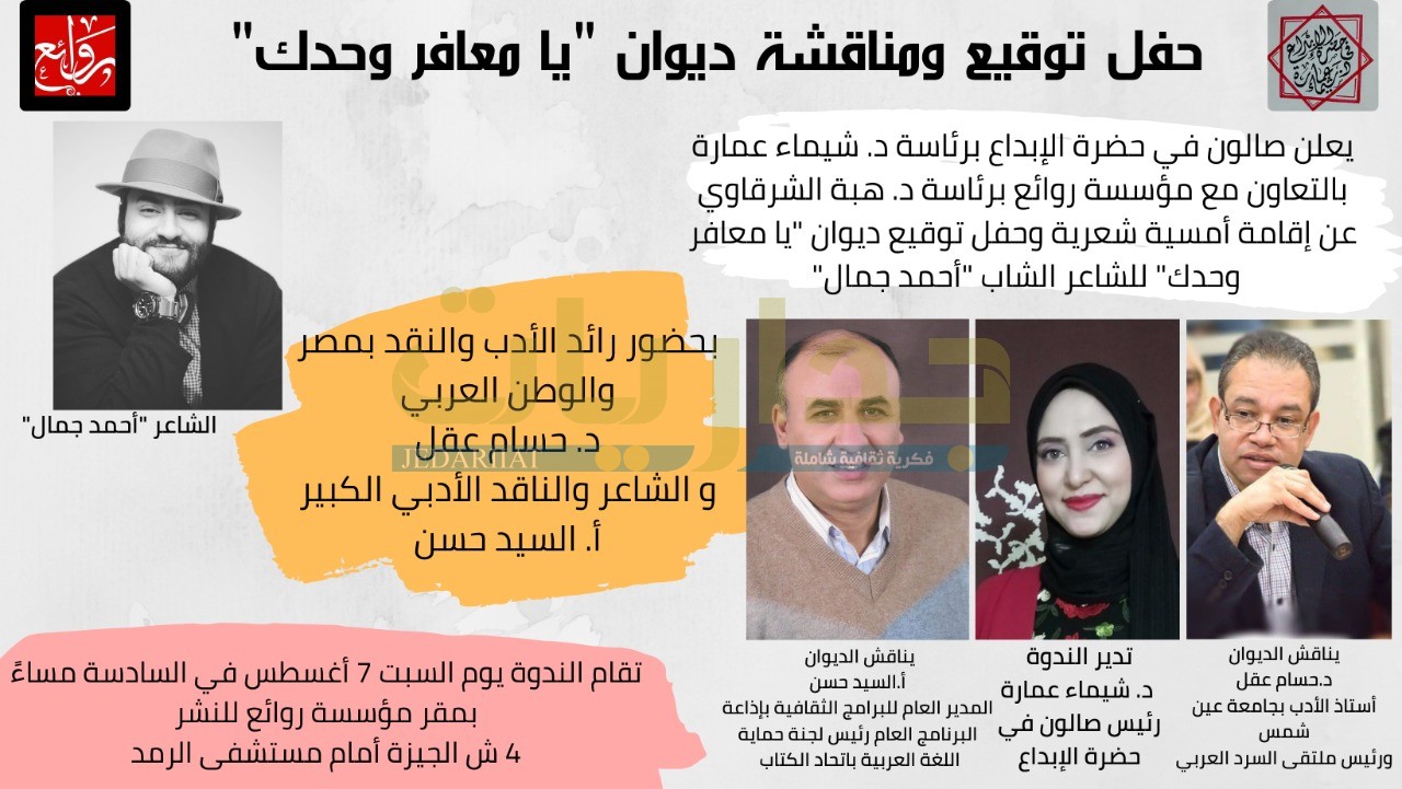 بحضور حسام عقل.. صالون شيماء عمارة يناقش "يا معافر وحدك" لـ أحمد جمال بمؤسسة روائع بواسطة أحمد عبد الله الأربعاء 04 أغسطس 2021