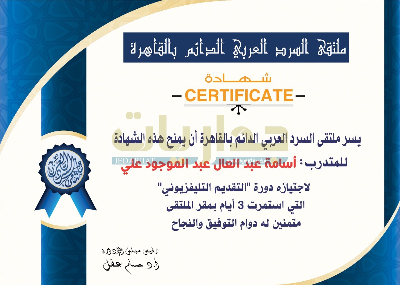 ملتقى السرد العربي يكرّم الإعلامي أسامة عبد العال لاجتيازه دورة "التقديم التليفزيوني" بواسطة أحمد عبد الله السبت 02 يناير 2021