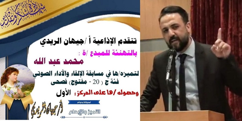 الشاعر محمد عبد الله يحصد المركز الأول في "فنّ الإلقاء لشعر الفصحى" بمسابقة جيهان الريدي بواسطة أحمد عبد الله السبت 17 أكتوبر 2020