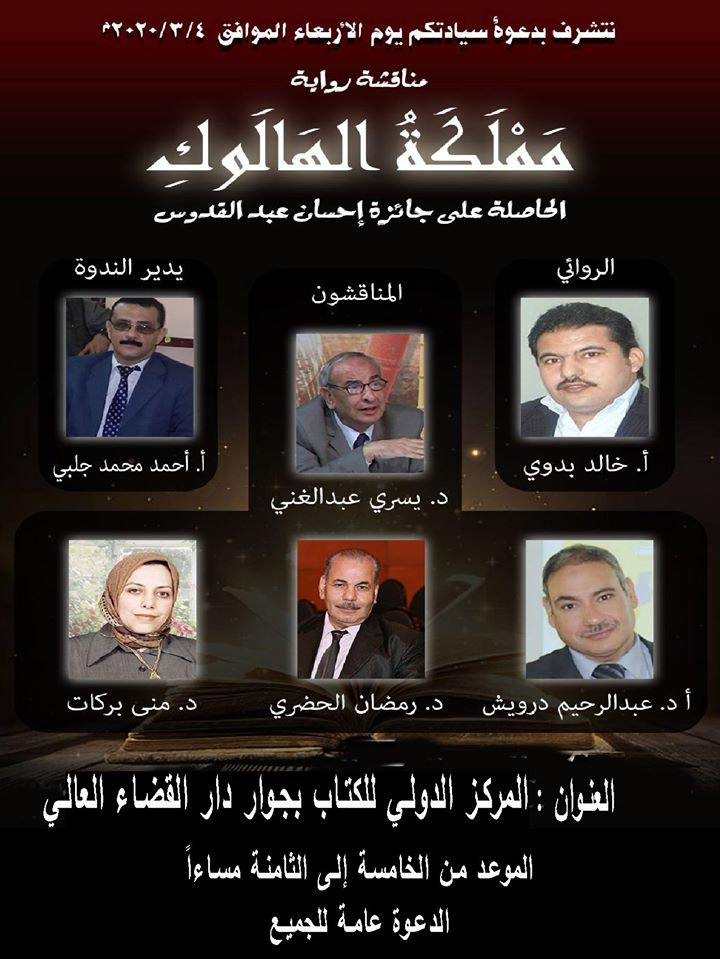 مناقشة "مملكة الهالوك" لخالد بدوي بالمركز الدولي للكتاب.. الأربعاء المقبل بواسطة معتز محسن الأحد 01 مارس 2020